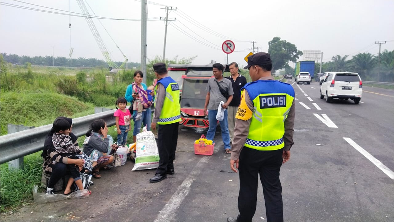 Saat pelaksanaan patroli, petugas menemukan pengguna jalan raya yang sedang duduk dipinggir jalan menunggu angkutan umum. Petugas menghimbau untuk selalu berhati- hati dan tetap menjaga barang bawaannya. Untuk memastikan keselamatannya, petugas mengarahkan penumpang agar dalam menunggu angkutan umum untuk menunggu ditempat pemberhentian maupun loket angkutan umum.