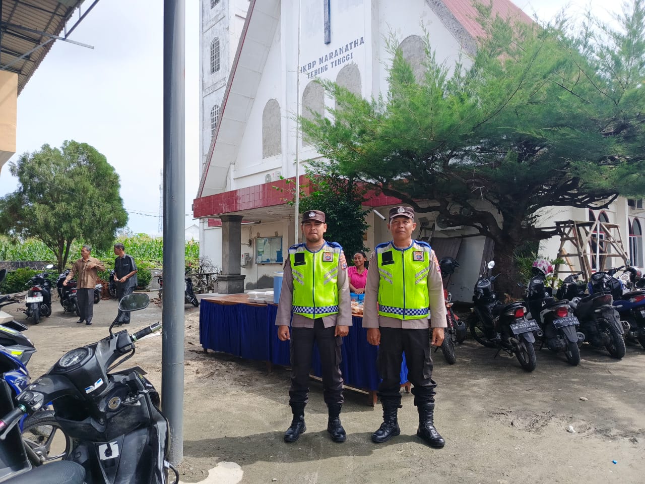 Tebing Tinggi|CN- Dalam rangka menjaga keamanan dan ketertiban selama kegiatan ibadah Minggu Kasih, Polsek Rambutan Polres Tebing Tinggi melaksanakan patroli dan pengamanan di sejumlah gereja yang ada di wilayah hukumnya. Kegiatan ini bertujuan memastikan suasana ibadah berjalan kondusif serta mengatur kelancaran arus lalu lintas di sekitar gereja, Minggu (3/11/2024).