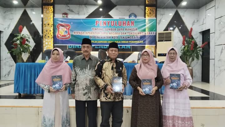 Tanjungbalai (CN) Walikota Tanjungbalai, H. Waris Tholib, menghadiri acara Penyuluhan Tentang Sumber Daya Manusia Kepada Aparatur Sipil Negara dan Tokoh Masyarakat di Pemerintahan Kota Tanjungbalai, di Aula Dinas Pendidikan Kota Tanjungbalai, Jalan Gaharu Kota Tanjungbalai, Sabtu (18/01/25) malam.