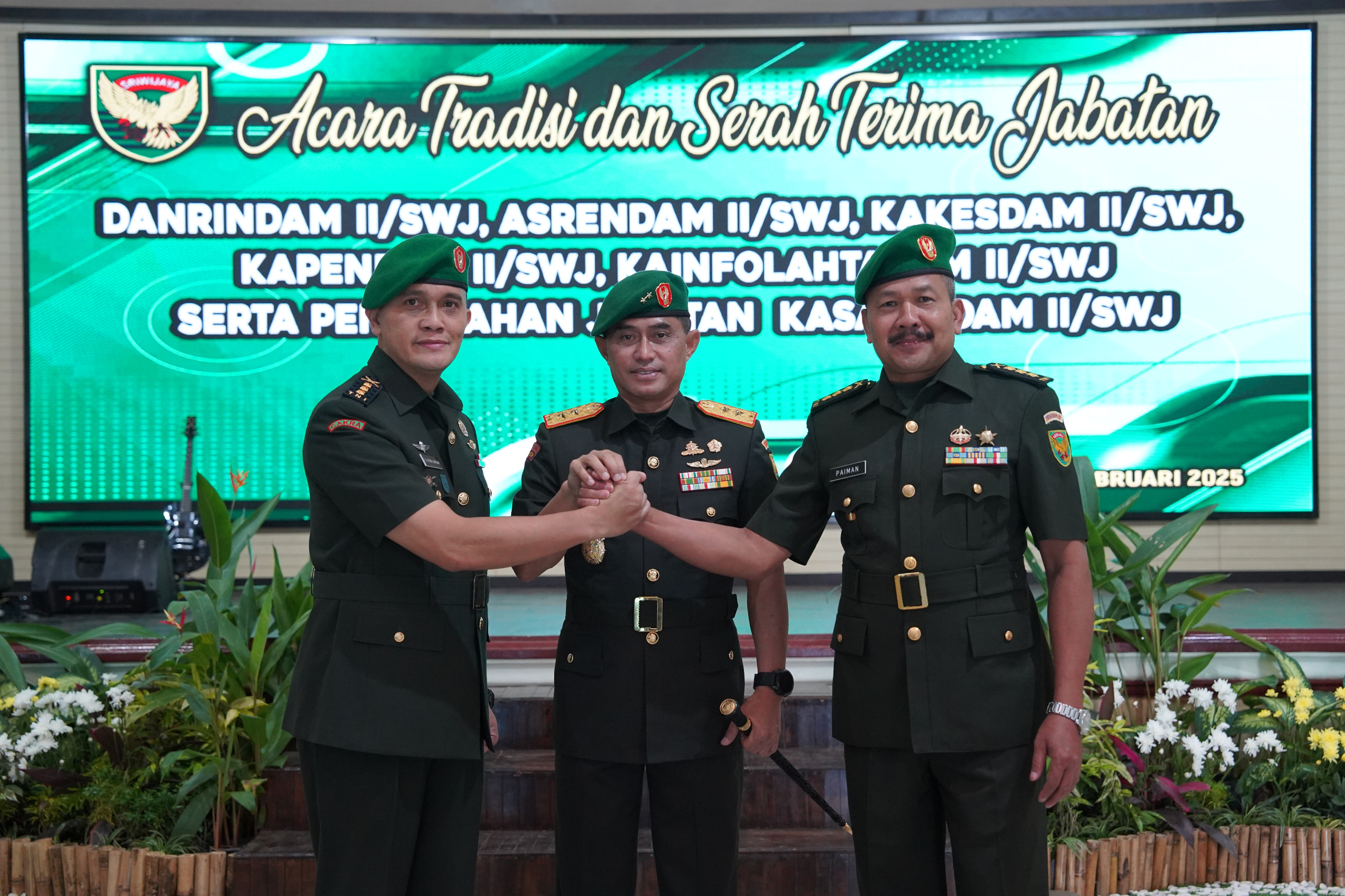 Jabatan lainnya yang mengalami pergantian yaitu: Asrendam II/Swj: dari Kolonel Inf I Nyoman Yudhana Dewata Putra kepada Kolonel Arm Dodot Sugeng Hariadi, S.E., M.I.P., Kakesdam II/Swj: dari Kolonel CKM dr. Gaguk Prasetya kepada Kolonel CKM dr. Maksum Pandelima, Sp.OT., M.M.R.S., Kapendam II/Swj: dari Kolonel Inf Drs. Paiman, M.I.P. kepada Kolonel Inf Eko Syah Putra Siregar, S.I.P., Kainfolahtadam II/Swj: dari Kolonel Caj (K) Eni Soerjantini, S.Pd. kepada Letkol Arh Albert Mohamad Esra.