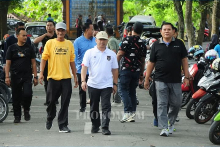 Sebelum buka rapat Plh. Sekretaris Daerah Kab. Inhu, Atan, SP berjalan kaki dari kantor bupati menuju Aula RSUD Indrasari Pematang Reba melakukan Peninjauan tempat pedagang Kaki lima (PKL) di Kecamatan Rengat Barat.