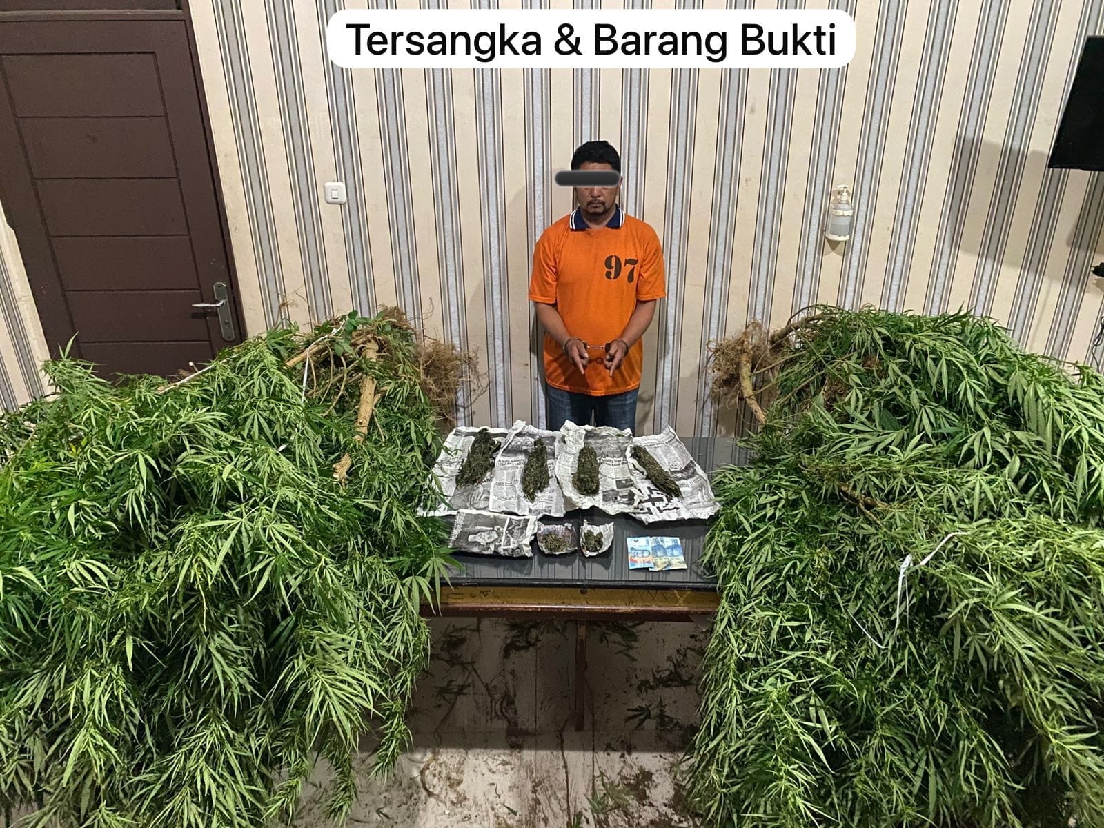“Pemeriksaan kemudian dilanjutkan ke rumah pelaku, di mana ditemukan empat bungkus ganja tambahan seberat 236 gram. Di lokasi terakhir, yaitu perladangan milik HB, petugas menemukan 37 batang tanaman ganja hidup dengan tinggi antara 100 cm hingga 240 cm,” terang Kapolres.
