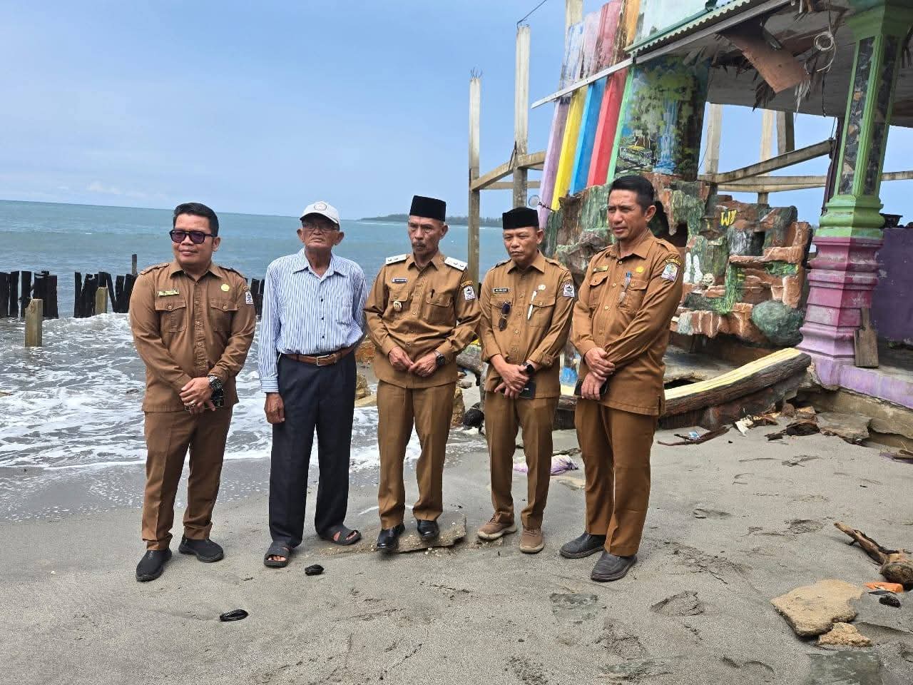 Aceh Singkil.CN Wabup Aceh Singkil, Hamzah Sulaiman, bersama kalak (kepala pelaksana) BPBD, kadis PUPR, dan LH meninjau abrasi Pulo Sarok, Senin, 25 Agustus 2025. Ia mengaku gelombang tinggi jadi ancaman.
