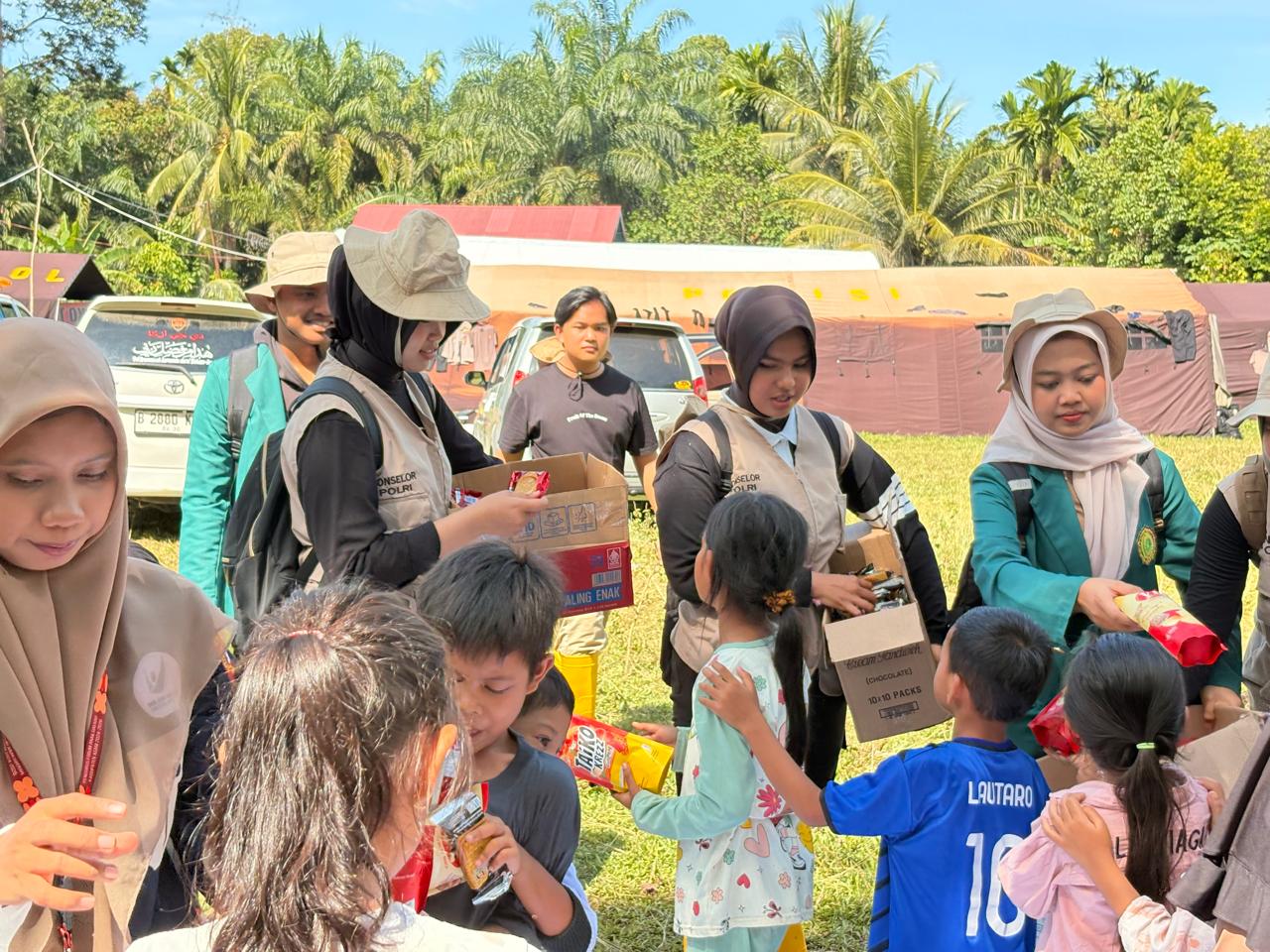 Di tengah ketidakpastian itu, Polwan Polda Riau hadir bersama konselor psikolog. Sebanyak 42 mahasiswa yang tergabung dalam Himpunan Mahasiswa Indonesia (Himpsi) turun ke tenda pengungsian untuk memulihkan para korban secara mental.