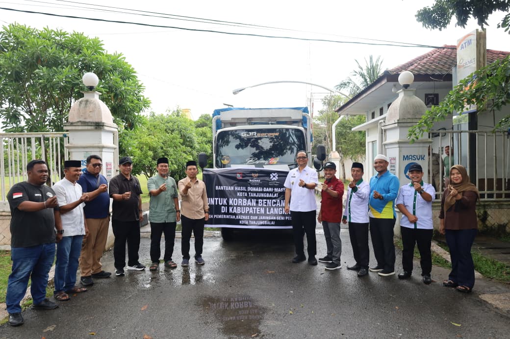 Tanjungbalai (CN) Pemerintah Kota (Pemko) Tanjungbalai bersama Badan Amil Zakat Nasional (Baznas) Kota Tanjungbalai dan Jaringan Seni Peduli Negeri Kota Tanjungbalai memberangkatkan bantuan kemanusiaan bagi korban bencana alam di Kabupaten Langkat. Pelepasan bantuan dilaksanakan di halaman Kantor Wali Kota Tanjungbalai, Sabtu (13/12/25).