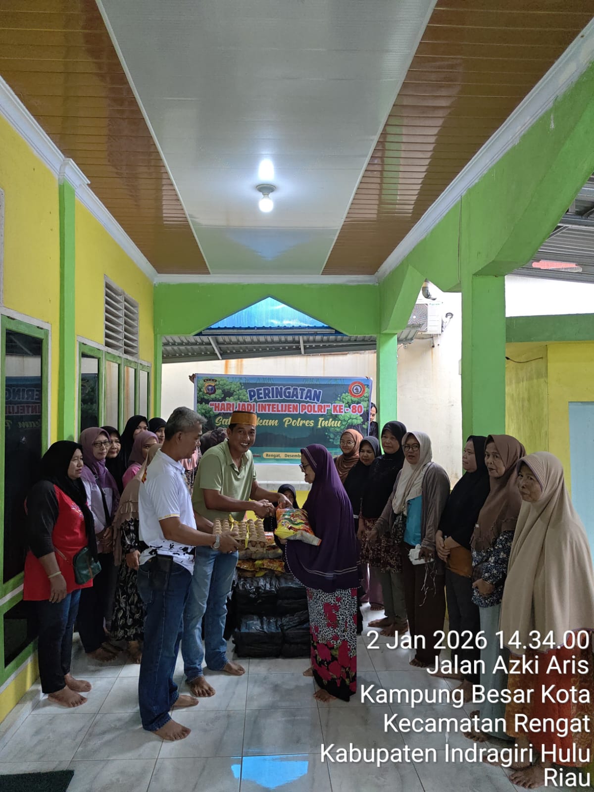 Kegiatan dipimpin langsung oleh Kasat Intelkam Polres Inhu, Iptu Baharrudin DM, S.Sos., bersama para Kanit dan seluruh anggota Sat Intelkam Polres Inhu. Dalam bakti sosial tersebut, disalurkan berbagai kebutuhan pokok berupa 25 papan telur, 25 karung beras, gula, minyak goreng, susu, serta mie instan. Bantuan ini diharapkan dapat meringankan kebutuhan dan menjadi bentuk nyata kepedulian Polri terhadap masyarakat serta keluarga besar Polri.