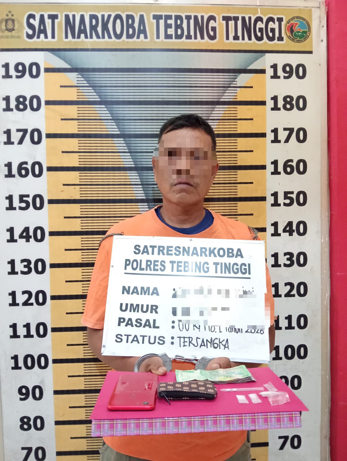 Tebing Tinggi.CN- Peredaran narkotika diwilayah hukum Polres Tebing Tinggi kembali terbongkar. Berawal dari laporan masyarakat, Satuan Reserse Narkoba Polres Tebing Tinggi berhasil mengamankan seorang pria berinisial J (46) yang terlibat kepemilikan sabu di Dusun II Desa Binjai, Kecamatan Tebing Syahbandar, Kabupaten Serdang Bedagai.
