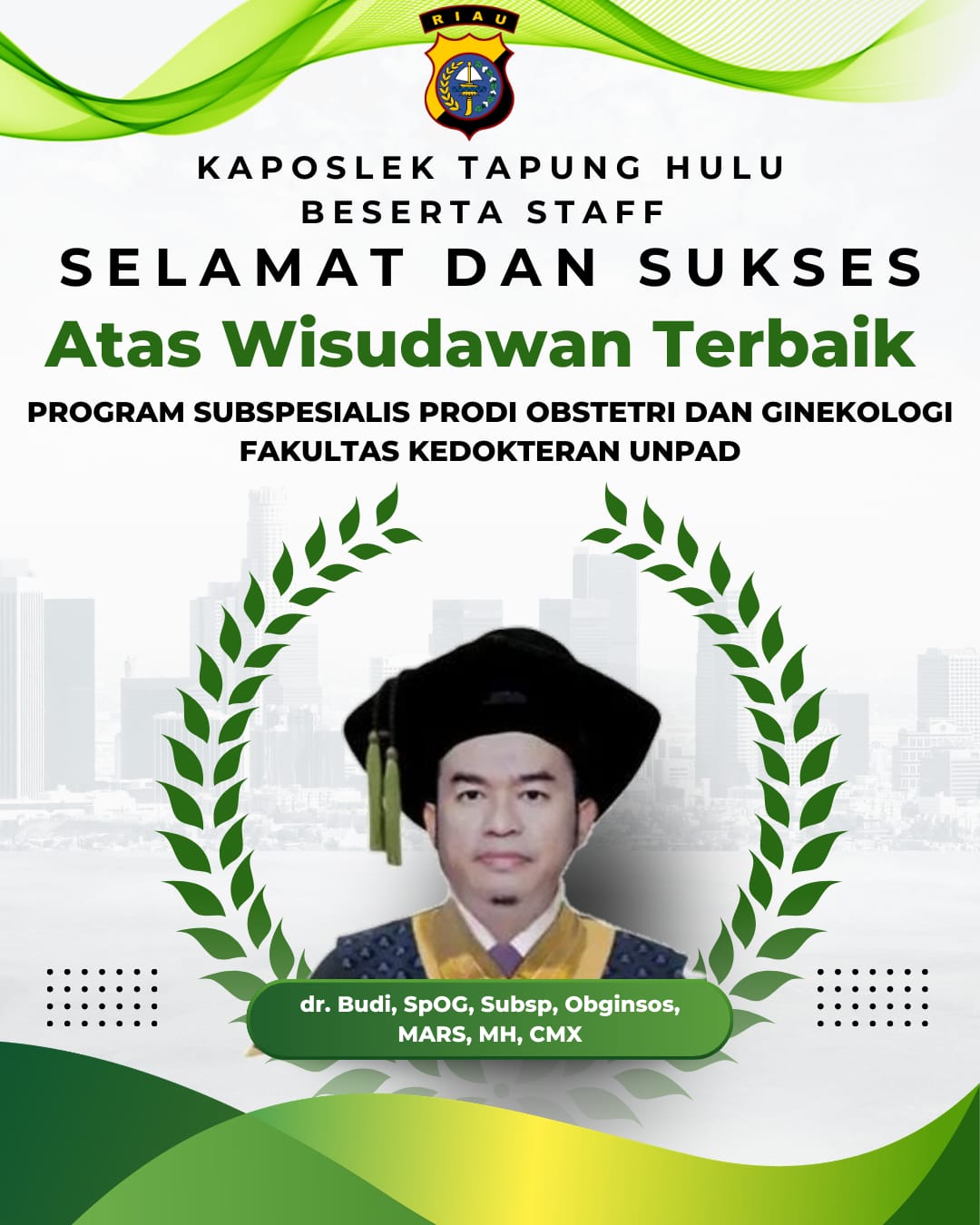 Riau,-CN -Kabar membanggakan datang dari Fakultas Kedokteran Universitas Padjadjaran (Unpad). Budi resmi dinobatkan sebagai Wisudawan Terbaik Program Subspesialis Prodi Obstetri dan Ginekologi pada wisuda Gelombang II Tahun Akademik 2025/2026.