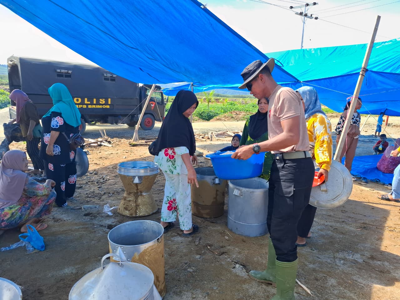 Kegiatan dapur lapangan juga dilaksanakan untuk memenuhi kebutuhan konsumsi warga. Makanan yang disiapkan dan didistribusikan menjadi bukti bahwa Brimob tidak hanya menjaga keamanan, tetapi juga hadir menguatkan ketahanan sosial masyarakat.
