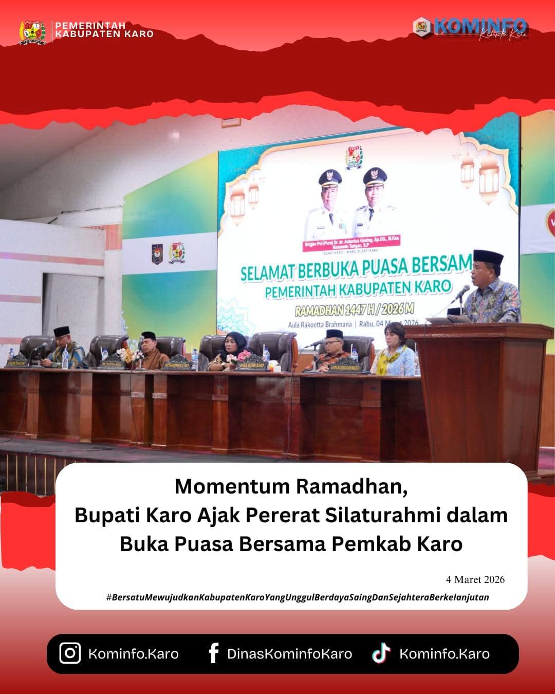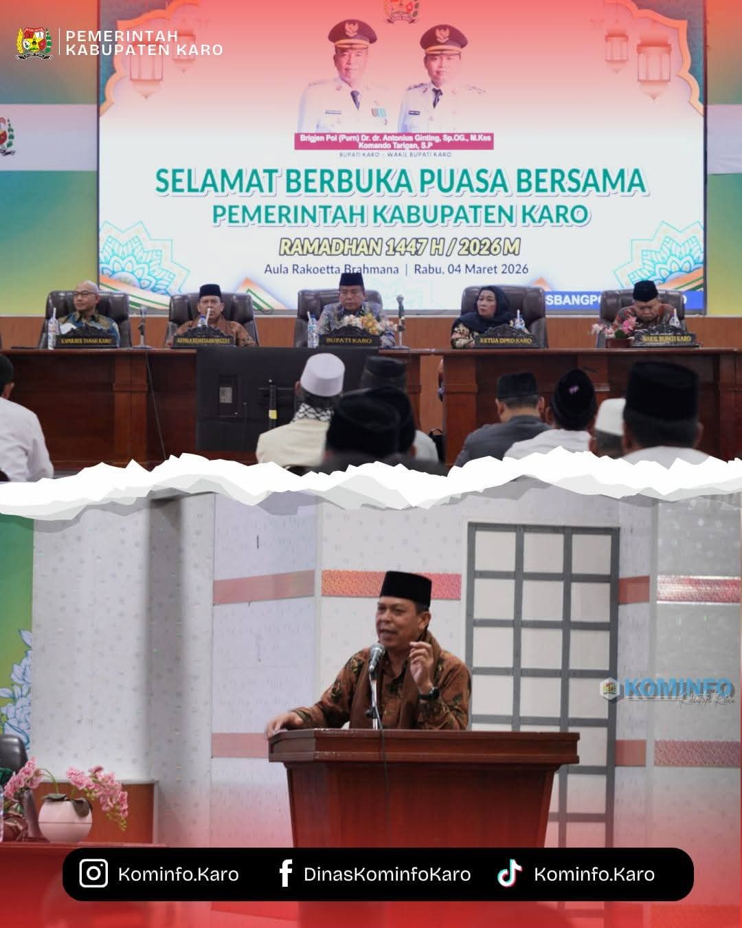 TANAH KARO CN.Id.  Bupati Karo, Brigjen Pol (Purn) Dr. dr. Antonius Ginting, Sp.OG., M.Kes., menghadiri Acara Buka Puasa Bersama Pemerintah Kabupaten Karo pada Bulan Suci Ramadhan 1447 H yang dilaksanakan di Aula Rakoetta Brahmana, Kantor Bupati Karo, pada Rabu (4/3/2026).