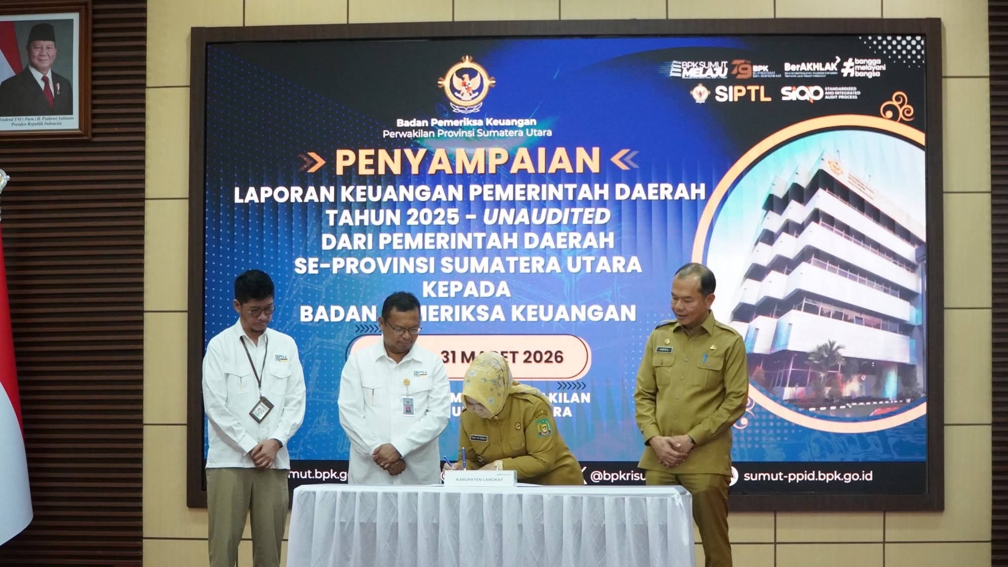 Medan CN– Pemerintah Kabupaten Langkat kembali menegaskan komitmennya dalam mewujudkan tata kelola keuangan daerah yang transparan dan akuntabel melalui penyerahan Laporan Keuangan Pemerintah Daerah (LKPD) Tahun Anggaran 2025 kepada Badan Pemeriksa Keuangan (BPK) Perwakilan Provinsi Sumatera Utara, di Medan, Selasa (31/03/2026).