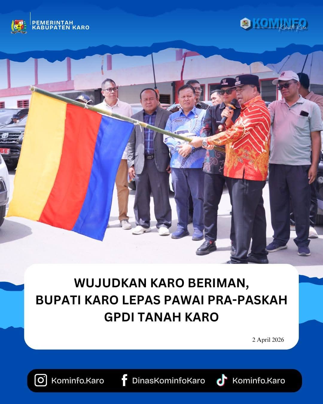 Kabanjahe CN.Id.  Bupati KaroBupati Karo, Brigjen Pol (Purn) Dr. dr. Antonius Ginting, Sp.OG., M.Kes., didampingi Wakil Bupati Karo, Komando Tarigan, SP., melepas Pawai GPdI Tanah Karo Tahun 2026 dalam rangka Pra-Paskah yang digelar di Stadion Samura Kabanjahe, Kamis (2/4/2026).