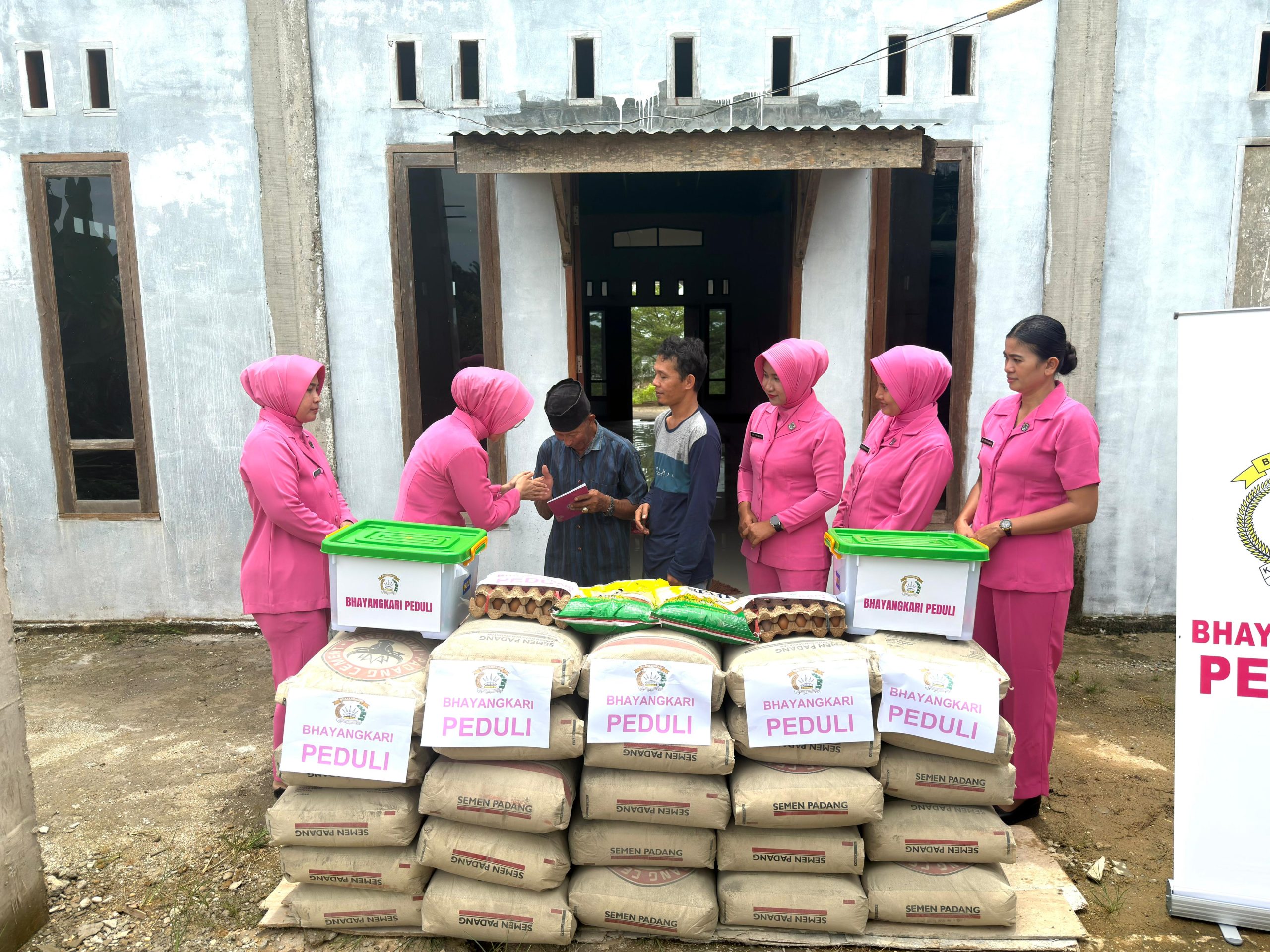Ny. Shanti Riko menyampaikan bahwa kegiatan ini merupakan bentuk nyata kepedulian Bhayangkari terhadap masyarakat, khususnya dalam mendukung sarana ibadah dan kesejahteraan warga.