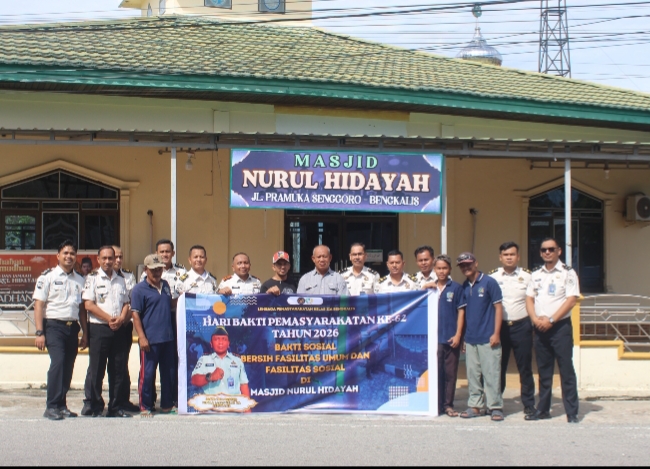 BENGKALIS – Menyongsong peringatan Hari Bakti Pemasyarakatan (HBP) ke-62, jajaran Lembaga Pemasyarakatan (Lapas) Kelas IIA Bengkalis melaksanakan aksi bakti sosial dengan membersihkan fasilitas umum di Masjid Nurul Hidayah, Desa Senggoro, Kamis (09/04). Kegiatan yang dimulai sejak pagi hari ini melibatkan para pejabat struktural, staf, hingga warga binaan yang tengah menjalani proses asimilasi untuk bergotong-royong merapikan area masjid, mulai dari menyapu halaman, membersihkan tempat wudhu, hingga mengepel. Aksi nyata ini merupakan wujud dedikasi pemasyarakatan kepada masyarakat serta upaya mempererat silaturahmi antara institusi dengan warga sekitar di wilayah Desa Senggoro.