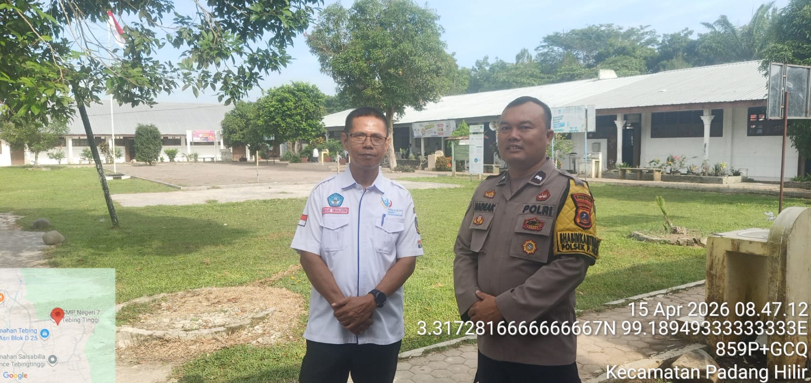 Tebing Tinggi-(Sumut).CN- Bhabinkamtibmas Polsek Padang Hilir Polres Tebing Tinggi Aipda P Nadeak melaksanakan sambang dan koordinasi untuk kegiatan upacara bendera di SMPN 7, Jalan Penghulu Tarif Lk. 5 Kelurahan Tebing Tinggi Kecamatan Padang Hilir Kota Tebing Tinggi, Rabu (15/4/2026).