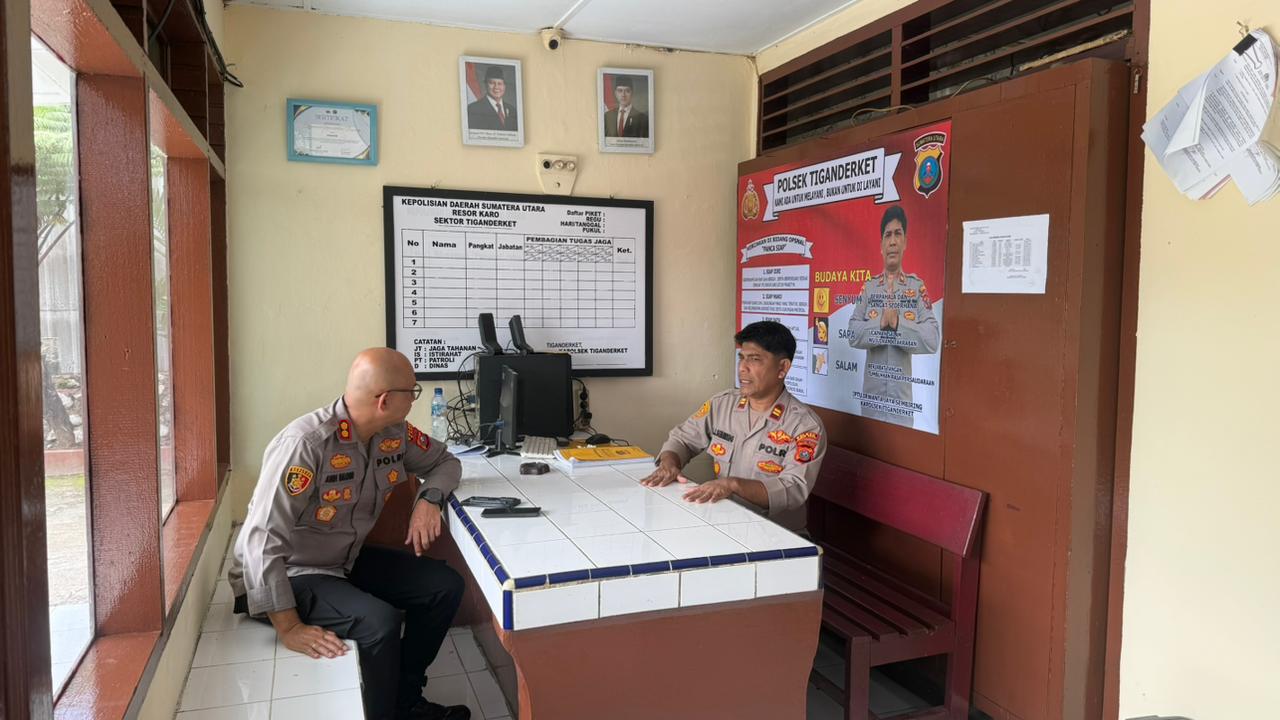 Salah satu Polsek yang dikunjungi yakni Polsek Tiganderket, guna memastikan kesiapan personel maupun sarana pendukung pelayanan kepolisian.