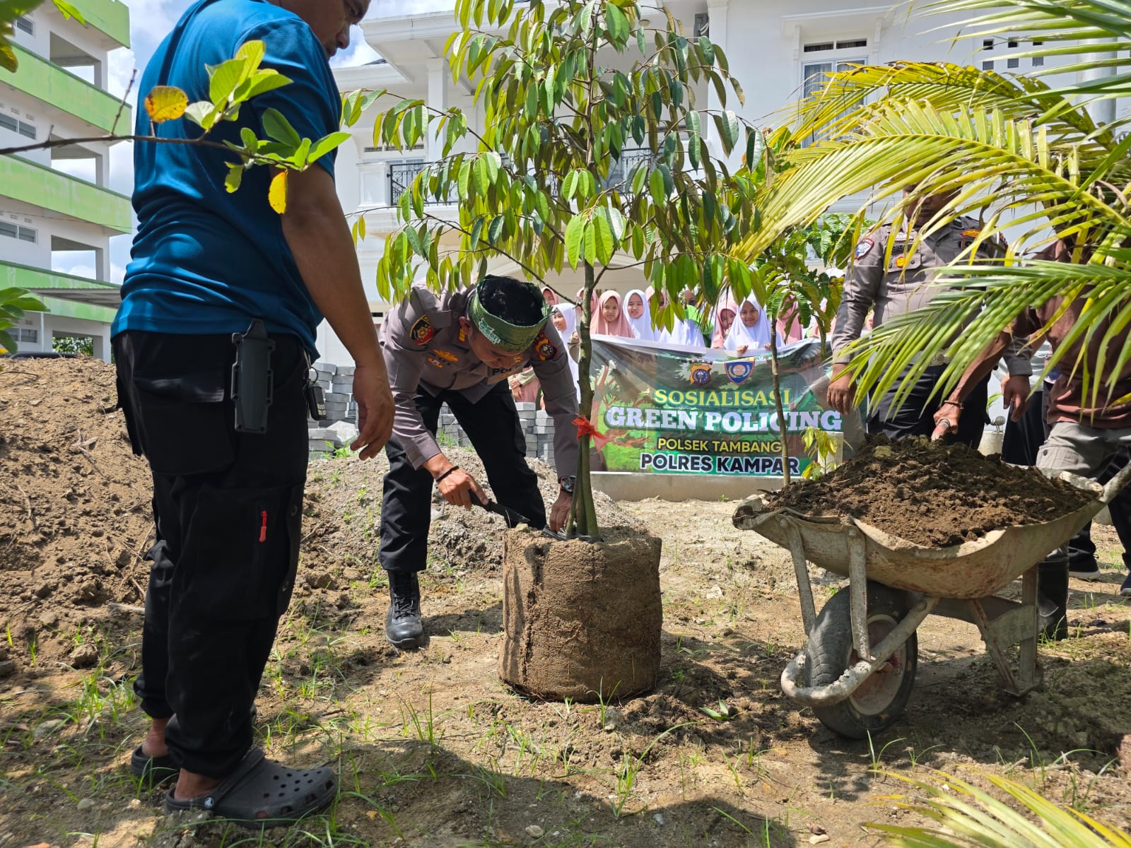 Tambang,-CN -Polsek Tambang menggelar kegiatan sosialisasi Program Green Policing Kapolda Riau sekaligus penanaman bibit pohon di Pondok Pesantren Az Zahra, Desa Rimbo Panjang, Kecamatan Tambang, Kabupaten Kampar pada hari Jumat (24/04/2026) pukul 10.00 WIB. Kegiatan yang bertujuan untuk meningkatkan kesadaran masyarakat tentang pentingnya pelestarian lingkungan ini juga menjadi bagian dari upaya mendekatkan kepolisian dengan elemen pendidikan agama.