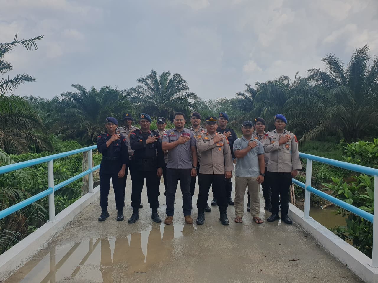 Kuok,-CN -Pembangunan Jembatan Sei Silam di Dusun Sungai Lintang, Desa Empat Balai Kecamatan Kuok, Kabupaten Kampar berhasil diselesaikan dengan progres 100% pada hari Sabtu (25/04/2026) pukul 16.00 WIB. Proyek yang direncanakan selesai dalam 15 hari bahkan dapat diselesaikan lebih cepat, tepat pada hari ke-10 pengerjaan berkat kerja sama yang erat antara personel Polda Riau, Polres Kampar, pihak kontraktor, dan masyarakat.