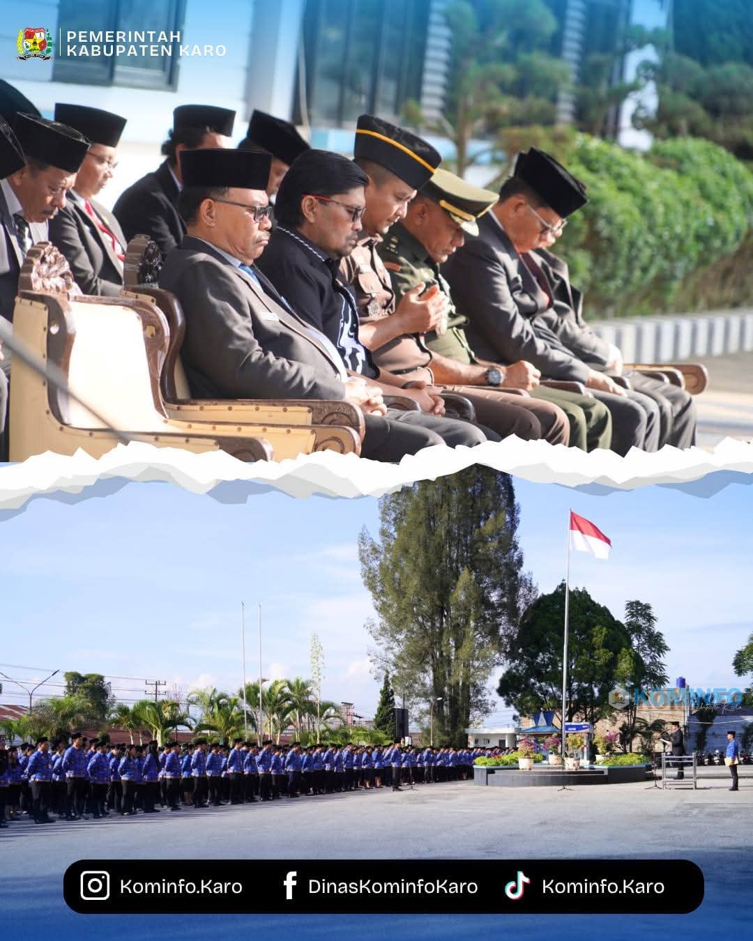 Upacara berlangsung khidmat dengan dihadiri oleh perwakilan unsur Forkopimda Kabupaten Karo, jajaran Kepala Organisasi Perangkat Daerah (OPD), para Camat se-Kabupaten Karo, serta seluruh Aparatur Sipil Negara (ASN) di lingkungan Pemkab Karo.