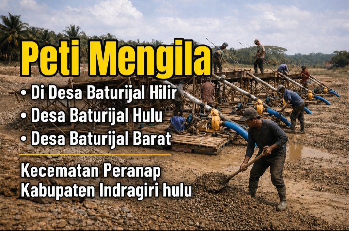 Cn.Id –Peranap– Deru mesin dompeng tidak terbendung lagi memecah kesunyian desa baturijal hilir, baturijal hulu dan baturijal barat keluaran baturijal Kecamatan peranap Kabupaten Indragiri hulu Aktivitas Penambangan Emas Tanpa Izin (PETI) kian hari kian menjadi, seolah tak tersentuh hukum dan tak tersorot keadilan.