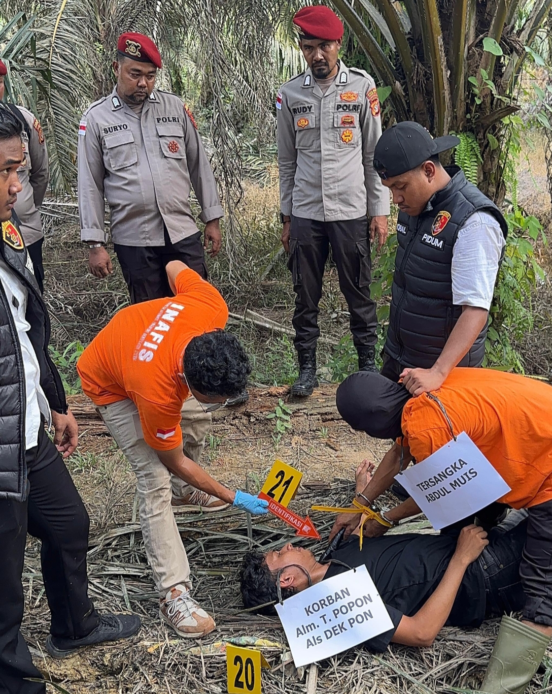 Polres Nagan Raya Gelar Rekontruksi Pembunuhan Di TKP Kejadian Desa Alue Bata
