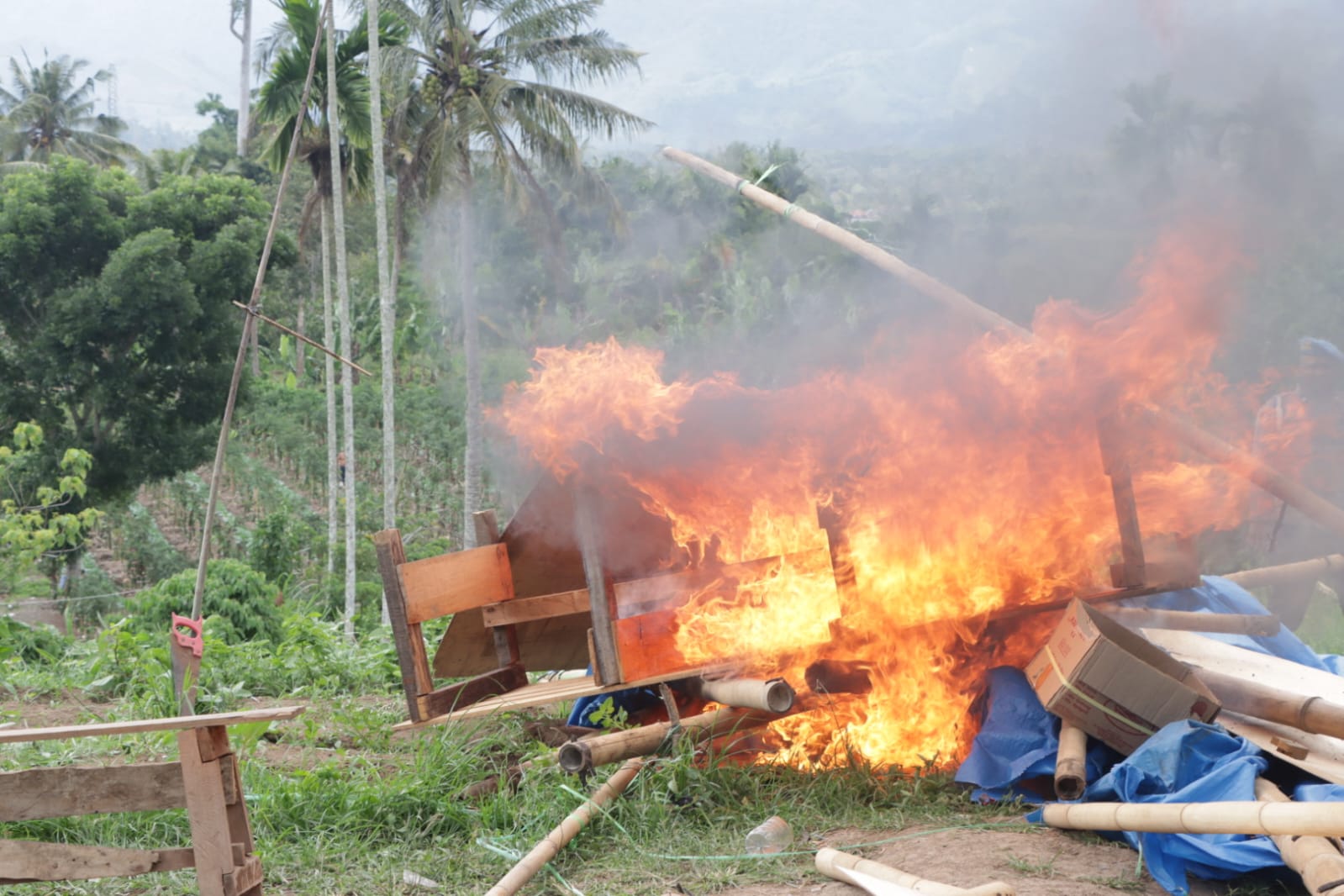 Sekitar pukul 12.35 WIB hingga 13.05 WIB, tim tiba di lokasi yang berada di kawasan perladangan Tembuten, Desa Sukatendel. Namun, kondisi area yang terbuka dan jalur perladangan yang sempit, membuat kedatangan petugas tak bisa cepat dan juga terpantau dari kejauhan, sehingga para terduga pelaku lebih dulu melarikan diri sebelum dilakukan penindakan.