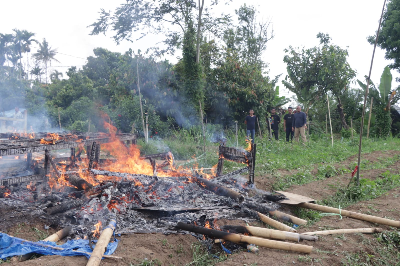 Di lokasi tersebut, ditemukan sejumlah barang bukti berupa plastik klip diduga sisa narkotika jenis sabu serta alat hisap (bong), yang menguatkan dugaan aktivitas ilegal di kawasan tersebut. Satu unit mesin ikan ikan juga ditemukan, yang disembunyikan diperladangan tersebut.