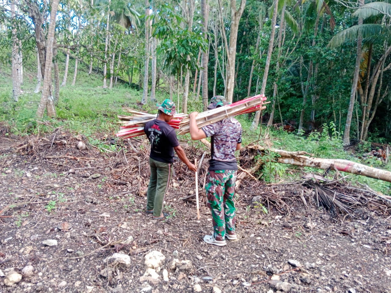 “Patok yang dipasang ini sebagai penanda lebar jalan. Tujuannya agar pekerjaan di lapangan tetap terarah dan sesuai ukuran yang sudah direncanakan,” ujar Serka Zulkarnain di lokasi kegiatan.