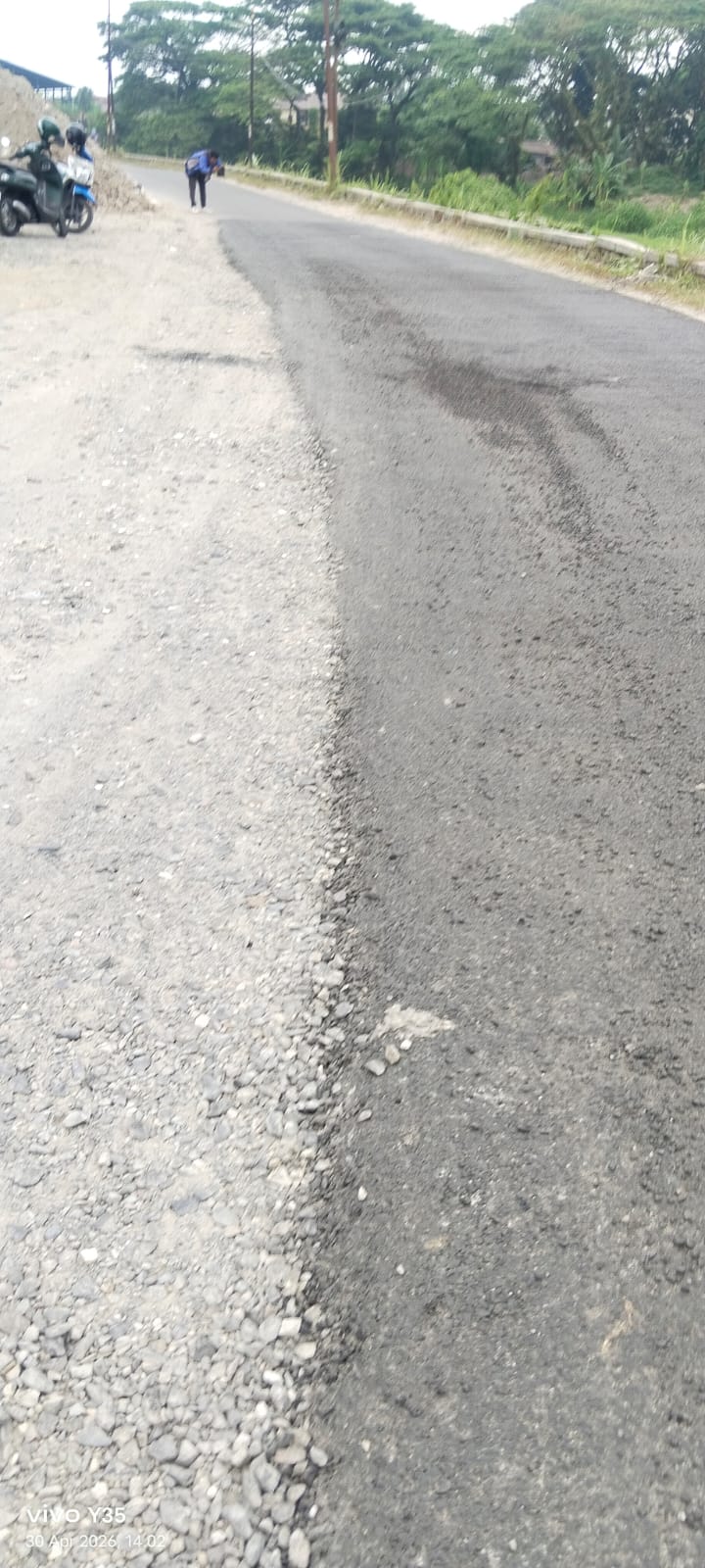 Proyek perbaikan jalan ini menggunakan metode Asphalt Concrete–Wearing Course (AC-WC) dengan panjang penanganan 176,36 meter dan lebar 3,5 meter. Pengerjaan dilaporkan selesai pada Kamis (29/4/2026), namun baru sehari kemudian, Jalan Inspeksi Kanal kondisinya sudah rusak parah.